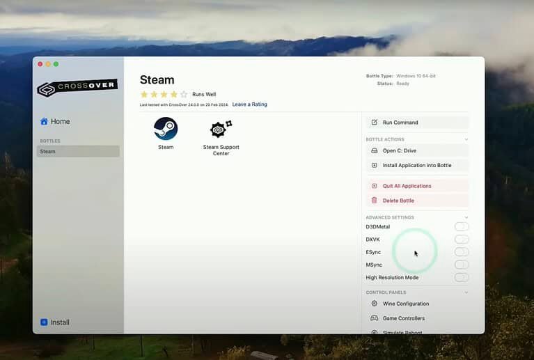 4. Install Steam: Within CrossOver, choose “Install a Windows Application,” search for Steam, and follow the installation steps.