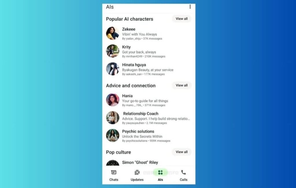 While these AI features are not entirely new to WhatsApp, they are currently limited to select countries and a few supported languages. Presently, users access Meta AI chatbots through the main “Chats” tab, but the new design highlights AI tools more prominently.
